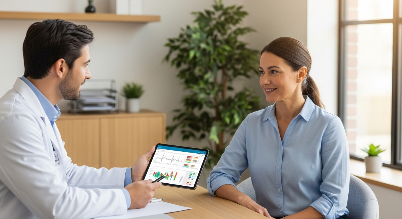 Arts die bloedonderzoek bespreekt met patiënt in een warme spreekkamer